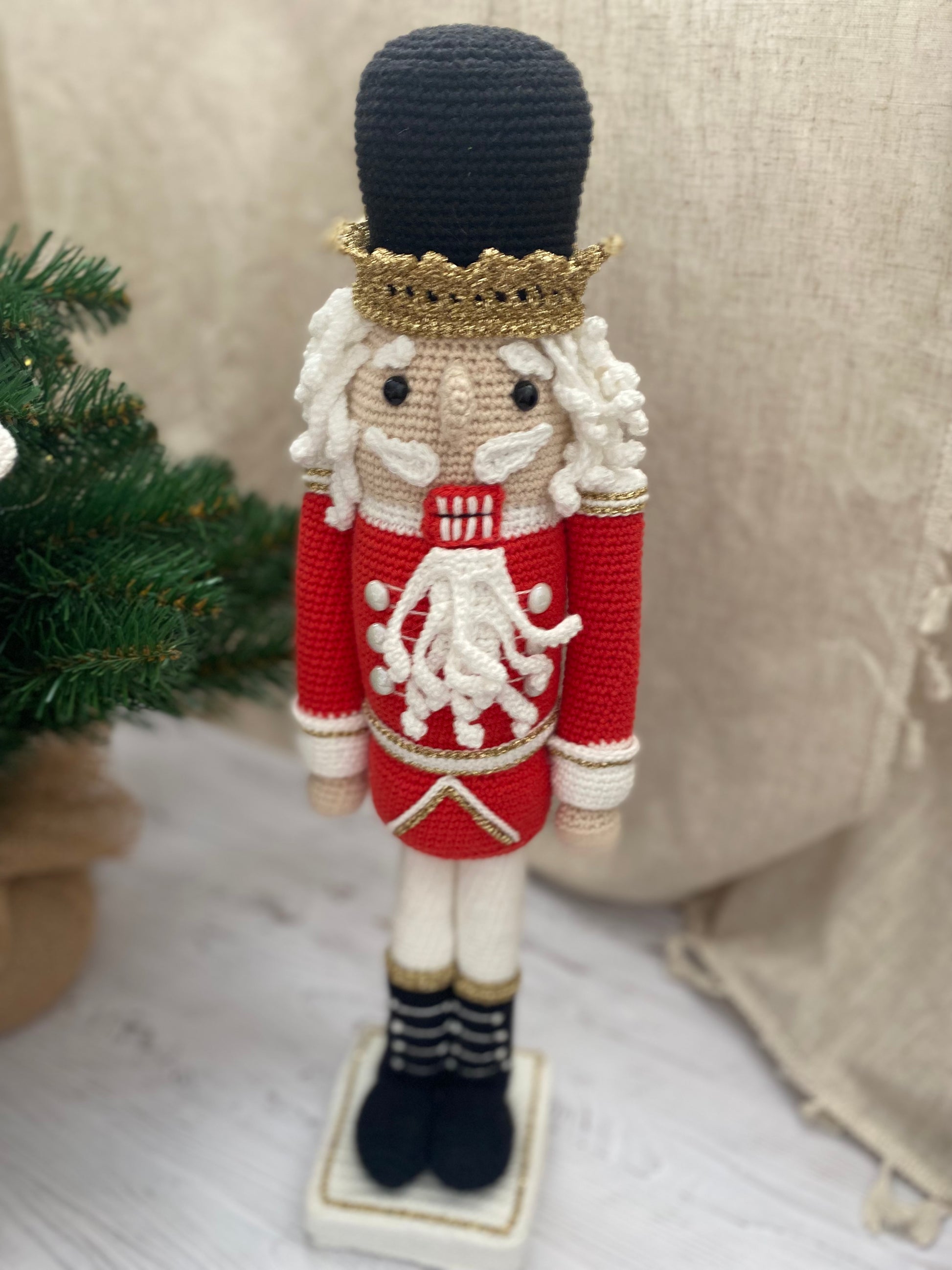Le casse noisette est fixer sur un socle en bois recouvert en crochet